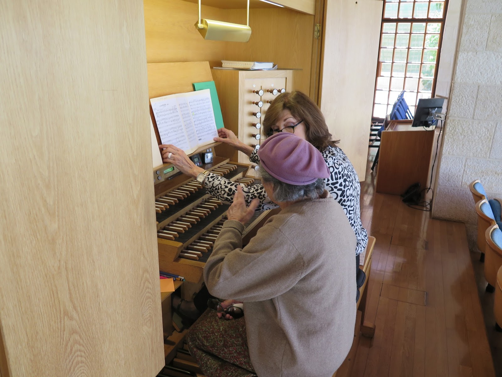 I gave a short organ recital which allowed me to display the organ's wide sound spectrum. This organ was designed specifically for the Jerusalem Center auditorium and it used to be the largest pipe organ in the Near East but apparently there is one a little larger now. Dr. Holland brought along two photographers and a videographer. Visitors are invited to take photos and come up to the organ while I play, but I never expected to have two photographers and a camera man film me from every angle while I performed. What you don't see is a video camera man who kept moving up and down very close to my hands and feet so no pressure, right? It was hard to focus on my music and I was relieved when I had finished my performance. Whew! Garth had our camera handy and the look on my face explains the pressure I was feeling.